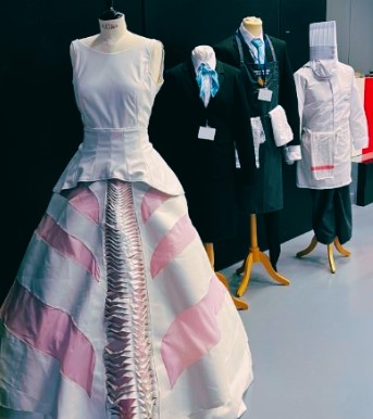 Des objets réalisés par nos différentes filières ont également permis de mettre en valeur la créativité, le savoir-faire de nos équipes et l’engagement de nos élèves (Robe du défilé de mode 2023 et Fauteuil de la République).
