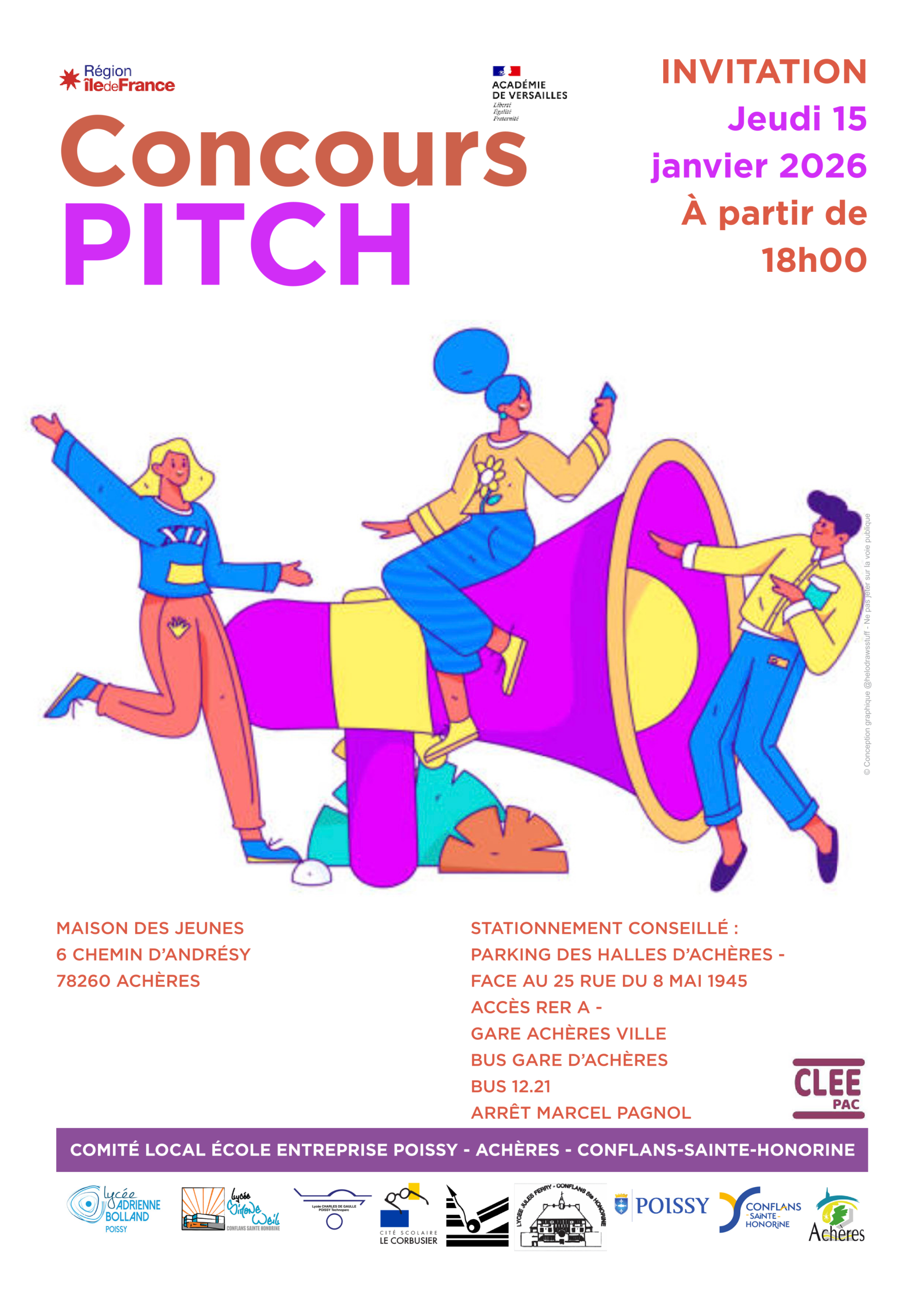 Trois élèves de Première de notre établissement participeront cette semaine à la deuxième édition du concours d’éloquence Pitch, organisé par le CLEEPAC (Comité Local École-Entreprise Poissy, Achères et Conflans).